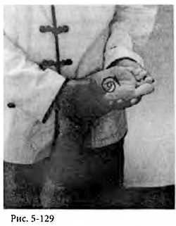 Точку Юнцюань массируйте большим пальцем, прижимая и двигая по кругу. Массируя правой рукой правую стопу круговыми движениями по часовой стрелке, вы направляете поток ци в почки (рис. 5-129). Делая то же самое на левой стопе, вы выводите ци из тела.