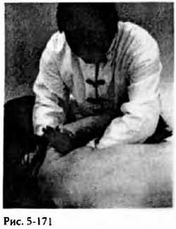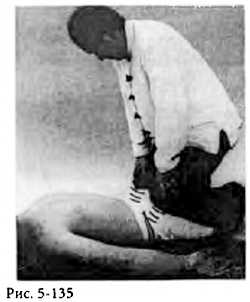 После этого захватывайте пальцами мышцы ягодиц и растирайте их (рис. 5-134). Следите за тем, чтобы не причинить боли пациенту, так как это приведет к напряжению и помешает успешному проведению массажа.