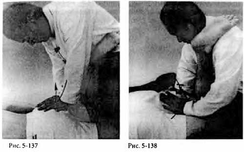 Если одной рукой вы не сможете оказывать необходимое давление, можно массировать двумя руками (рис. 5-137). Повторите несколько раз.