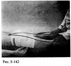 Закончив этот массаж, обеими кистями проведите несколько раз по задней, внутренней и наружной сторонам ног вниз от таза к коленям (рис. 5-142).