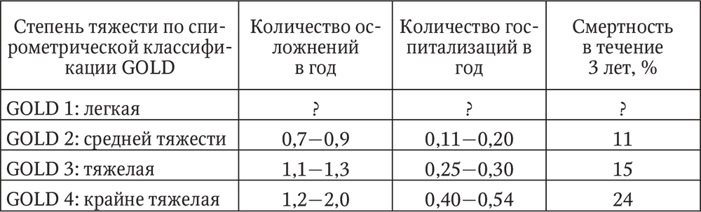 Обострения ХОБЛ способствуют снижению функции легких, ухудшению состояния здоровья и увеличению риска смерти, поэтому оценка риска обострений рассматривается как оценка неблагоприятного клинического прогноза в целом.