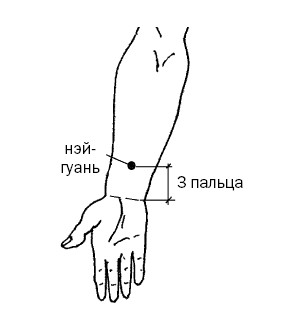 Нэй-гуань, то есть «горная граница» для прохождения болезнетворной энергии (рис. 17, д). Основная функция – лечение болей в печени, а также болезней расстройства жизненного духа Шэнь (при недостатке жизненной энергии) и болей в области сердца (при переизбытке жизненной энергии).