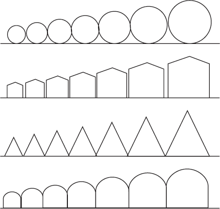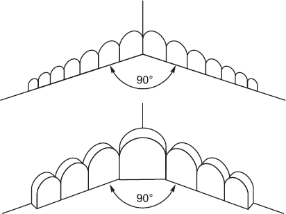 По заверениям видеоэкологов в спальне должно быть как можно меньше агрессивной для глаз среды. Для снижения отрицательного воздействия на человека прямоугольных углов (острых краев дверей, шкафов, рамок картин) экологи рекомендуют применять отражающие геометрические фигуры, имеющие округлую или овальную форму. Примеры таких фигур, вырезанных из картона или бумаги и устанавливаемых в углах спальни, приведены на рис. 1.