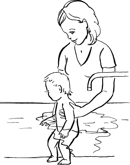 Не спеша ведите его от одного конца ванны в другой. Следите за тем, чтобы ребенок касался стопами дна ванны.
