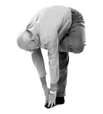 8. Если вам не хватает растяжки, чтобы положить ладонь 9 не пол, положите ладонь на опору, например, на офисный стул. Если не удается захватить стопу рукой, тянитесь вниз обеими руками.
