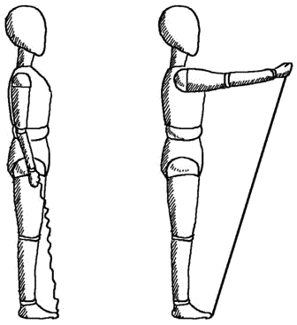 3. ИП: встать прямо со слегка согнутыми в коленях ногами, закрепив резиновый жгут (эспандер) правой ногой. Другой конец жгута взять в правую руку. Слегка сгибая локтевой сустав, поднять руку (со жгутом) до уровня плеч. Выпрямить руку и затем медленно опустить ее. Поменять руки. Упражнение полезно для укрепления мышц и суставов рук и плечевого пояса (рис. 6.19).