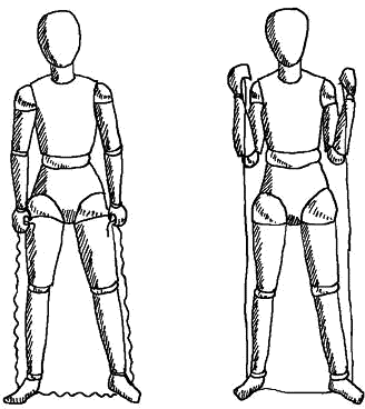 6. ИП: встать прямо, немного согнув ноги в коленях, стопы на расстоянии 30 см друг от друга. Резиновый жгут закрепить, как в предыдущем упражнении, руки опущены вниз. Приподнять плечи, не сгибая рук, как можно выше. Затем медленно занять исходное положение. Упражнение полезно для плечевых мышц (рис. 6.22).