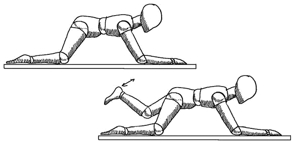 9. Принять коленно-локтевое положение. По очереди поднимать ноги вверх, стараясь максимально их выпрямить. Эо хорошее упражнение для мышц задней поверхности бедер и спины (рис. 6.25).