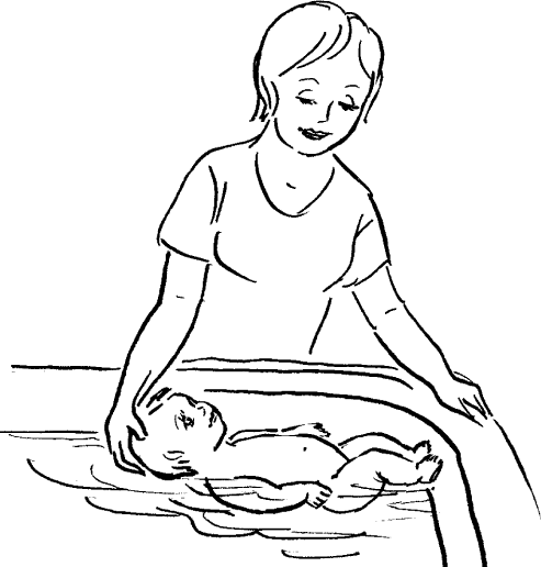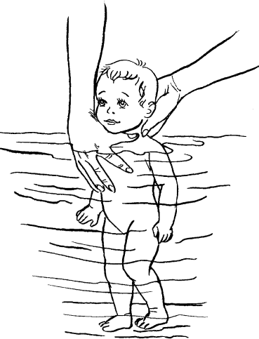• После того как ребенок оттолкнулся, не спеша ведите его к противоположной стороне ванны (рис. 436).