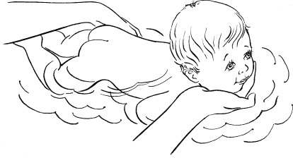 • Опустите малыша спиной на свою правую руку, при этом левая рука переходит в захват – указательный палец по спине вдоль лопатки, большой – на ключице сверху, три пальца – под затылок (рис. 433).