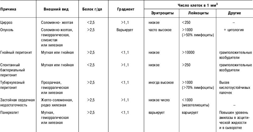 Характеристика перитонеальной жидкости при асците различного происхождения