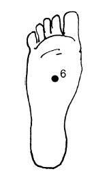 6. Точки (6), расположенные в середине подошвы, в углублении, образующемся при поджатии пальцев стопы (рис. 6, б).