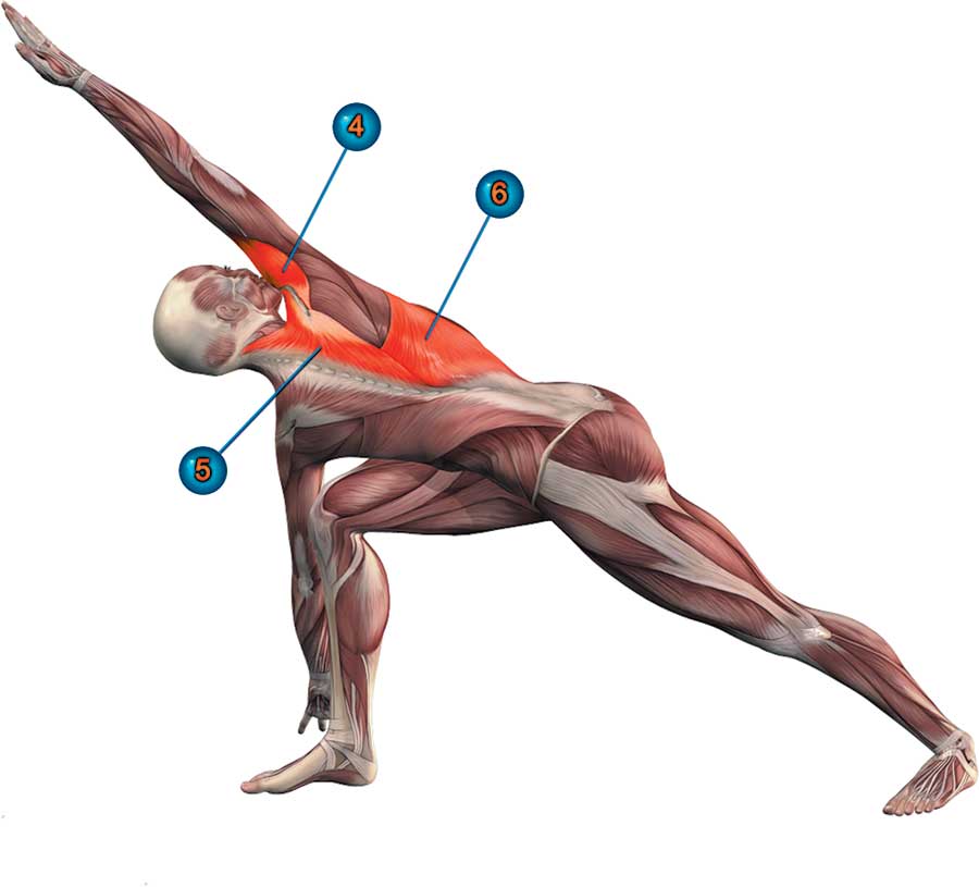 Кроме того, в этой асане растягиваются широчайшая мышца спины, большая и малая грудные мышцы со стороны поднятой руки.