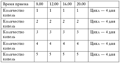 Как видно из табл. 1, максимальная суточная доза по этой методике составляет 20 капель, хотя зачастую достаточно и 16. «Потолок» определяет сам лечащийся, оценивая состояние собственного организма. Как правило, та доза, при которой больной заметил улучшение своего здоровья, является определяющей, на ней и следует остановиться. Через некоторое время ее можно слегка увеличить, но делать это надо крайне осторожно.
