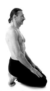 Встаньте на колени, соедините носки ног, а пятки разведите в стороны. Сядьте на разведенные пятки, руки свободно положите на колени.