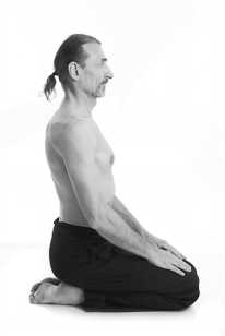 Встаньте на колени, стопы оттяните назад, подъемы стоп должны быть перпендикулярны полу, колени и стопы соедините вместе, затем сядьте на пятки. Не разъединяя колени и носки ног, разведите пятки в стороны так, чтобы было удобно сидеть.
