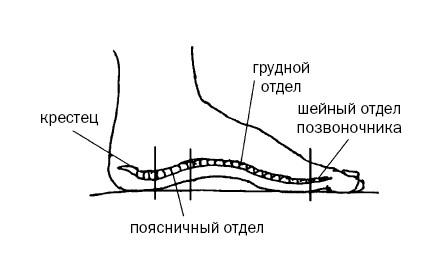 У позвоночника существует еще одна выразительная зона подобия. Если вы присмотритесь к своей стопе в разных проекциях, то уловите сходство изгибов свода стопы (на боковой поверхности) с изгибами позвоночного столба. Наши специалисты-ортопеды используют эту зону подобия очень широко. Графически рефлексная (или рефлексогенная) зона позвоночника на стопе изображается совсем просто. Однажды взглянув на рисунок, вы уже не забудете схему никогда. Зона позвоночника проходит низко над внутренней кромкой свода (рис. 15, а).