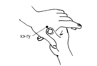 Точка расположена на наружной стороне кисти (рис. 17, г). Сомкните большой и указательный палец, точку можно найти между 1-й и 2-й пястными костями, приблизительно в середине лучевого края 2-й пястной кости. Хэ-гу используют при лечении: