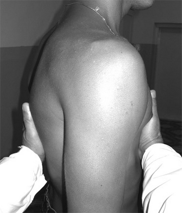 Определение голосового дрожания производится в установленной последовательности: сзади сначала в надостных областях, затем в межлопаточной области, ниже углов лопаток (рис. 22), нижнелатеральных отделах. Точно также последовательно сверху вниз определяется голосовое дрожание на симметричных участках по аксиллярным линиям. Спереди исследование начинают с надключичных областей, затем исследуют области больных грудных мышц, нижнелатеральные отделы грудной клетки. При патологических состояниях в бронхолегочной системе голосовое дрожание может или ослабевать или усиливаться.