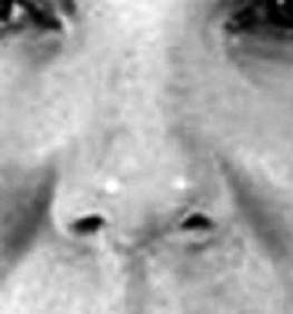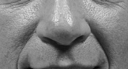 Кроме образования «верхних» носогубных складок, спазм латеральной части носа приводит к тому, что боковая сторона носа укорачивается, поджимается к глазу и, обрастая в этом месте хрящевой и жировой тканью, создает бугор, выпуклость (рис. 41).