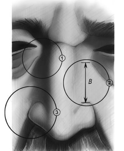 Укорочение боковых сторон носа (расстояние В) приводит к тому, что центральная спинка носа начинает выглядеть длиннее, клюющей вниз (рис. 42).