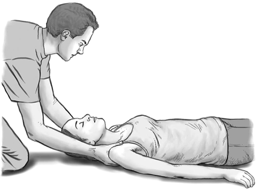 Если нет людей, которые помогут положить пострадавшего на доску, или если нужно быстро перенести его на короткое расстояние, убрав из опасной зоны, возможен следующий способ. Присядьте у изголовья больного, обхватите его за плечи (точнее, за трапециевидные мышцы), руками сожмите голову и тяните его к себе. Старайтесь не поднимать его голову больше необходимого и тяните по прямой в направлении вдоль тела, чтобы позвоночник не сгибался и не скручивался. Таким образом можно, в частности, поместить пострадавшего на доску: придерживать ее ногой у головы пострадавшего, втаскивая тело в направлении вдоль доски.
