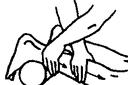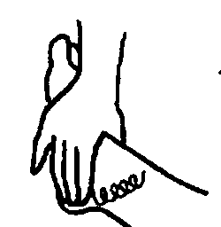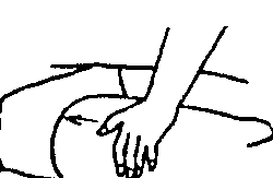 Второй вариант этого приема выполняют так же, как описано выше, только опорой служат четыре пальца, а массаж производится подушечкой одного большого пальца (рис. 12).