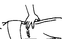Спиралевидное поглаживание. Техника его выполнения немногим отличается от поглаживания одной рукой. Рука плотно обхватывает мышцу, кисть расслаблена, но движения руки не прямолинейные, как при ординарном поглаживании, а спиралевидные (рис. 9), кисть руки как бы слегка вибрирует или выполняет спиралевидные движения, не отрываясь от мышцы.