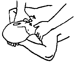 Похлопывание делают кистью со сжатыми в кулак пальцами, при этом должен быть хлопающий звук (рис. 28). Частота 60–80 ударов в 1 мин.