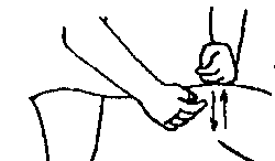 Выжимание одной рукой выполняют в основном бугром большого пальца и основанием ладони. При этом большой палец прижат к указательному, а четыре остальных слегка отведены в сторону и находятся в расслабленном состоянии (рис. 25). Выжимание двумя руками проводится с помощью накладывания на тыльную часть массирующей кисти поперек отягощающей руки так, чтобы край кисти со стороны мизинца располагался над бугром большого пальца. Большой палец при отягощении плотно прижимают к указательному (рис. 26, 27).