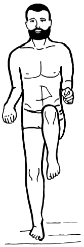 5. Ходьба с высоким подниманием бедер и активной работой рук в течение 3–5 мин.