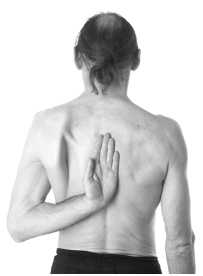 1. Заведите за спину левую руку, прижмите ее тыльной стороной ладони к позвоночнику.