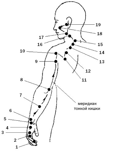 2. Цин-лин («весенний и божественный») расположена на 3 цуня выше следующей точки (шао-хай). Показания для ее использования: боль и ограничение подвижности в плечевом суставе, боль в плече, боль в боковой поверхности грудной клетки, головная боль.
