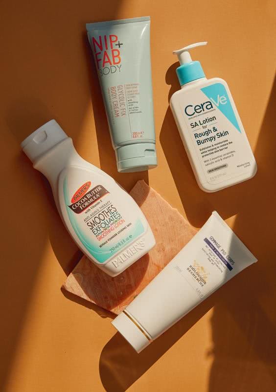 На коже тела, как и на коже лица, постоянно отмирают клетки эпидермиса. И хотя из-за постоянного трения об одежду их не накапливается слишком много, иногда бывает нужно дополнительно отшелушивать кожу. Особенно это полезно зимой, когда у многих людей на бедрах и плечах появляются маленькие сухие красные воспаления, которые совсем не болят и не содержат гноя. Это не прыщи, как принято думать, а явление под названием «keratosis pilaris», или «куриная кожа». Такое бывает от того, что волосы не могут прорасти сквозь слой омертвевших клеток. С этой проблемой, как и с другими видами кератоза, отлично справляются пилинги.