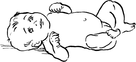 Проявления физиологического гипертонуса. Когда ребенок лежит на спине, его руки согнуты, прижаты к тельцу. Если вы захотите их развести в разные стороны, то сразу почувствуете, что малыш не дается вам просто так и оказывает сопротивление. При этом кулачки его сжаты, а большой палец находится внутри. Ножки тоже согнуты, слегка подтянуты к телу, и их тоже нужно разводить с некоторым усилием. Все это – проявления физиологического гипертонуса, с которым рождаются все малыши. Он естественно исчезает по мере адаптации ребенка к новым условиям.
