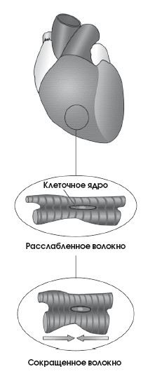Волокна сердечной мышцы поперечнополосатые (под электронным микроскопом видны линии, придающие мышцам такой вид), устойчивые к усталости. Сокращение сердца происходит непроизвольно, а частота биений регулируется в зависимости от потребностей и состояния организма.