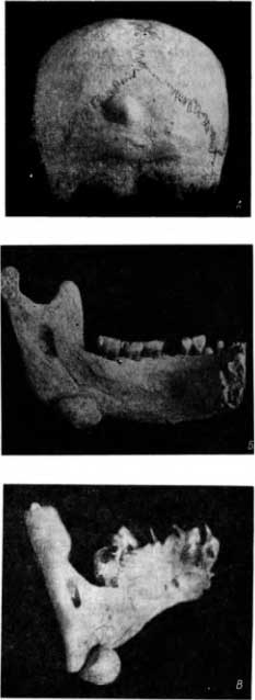 Очень редкая локализация остеомы наблюдалась у шамана XIX в. из Восточного Алтая. Это была остеома гайморовой полости (рис. 61, В и Г). Его лицо и без устрашающих одежд, пляски, бубна, пения и завывания в соответствии с убеждениями малокультурных людей могло должным образом действовать на злых демонов, пугать их.