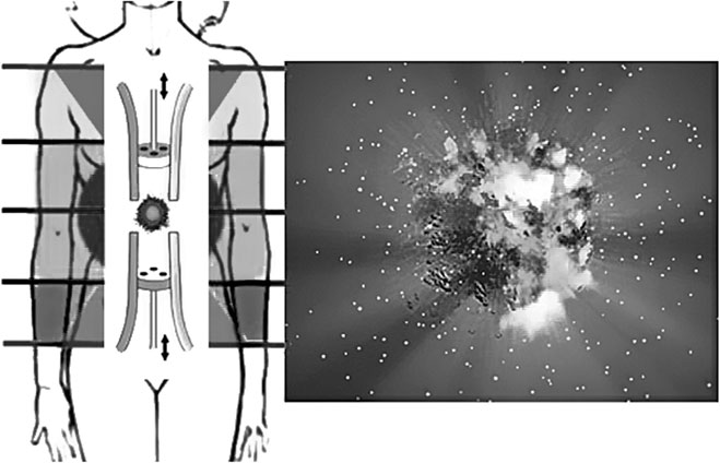 При резком падении артериального давления вся вода, собравшаяся в верхней части тела, падает водопадом на сжатый, как пружина, «концентрат». Происходит кавитационный удар. Пружина резко распрямляется, выплескивая вверх потоки жидкостей. Тот же процесс происходит и при преодолении самолетом сверхзвукового барьера.