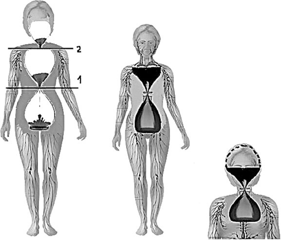Чаще всего предрасположенность к возможному инсульту можно считать по короткой шее и излишкам воды в мозге – веностазу, что часто видно по сильной отечности лица и повышенному внутричерепному давлению (рис. 60). Веностаз мозга, или, другими словами поверхностная наружная гидроцефалия – симптом накопления в мозге лишней венозной жидкости (от которой страдает больше половина населения) часто сопутствует повышенному внутрибрюшному давлению.