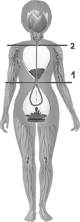 Так как наше тело имеет две зоны риска: первую – в грудобрюшной диафрагме, соединяющей и разделяющей две нижние ступени тела, и вторую – в зоне перехода верхней половины тела – в голову, то проблемы с сосудами могут приводить как к инсультам, так и к инфарктам (рис. 57).