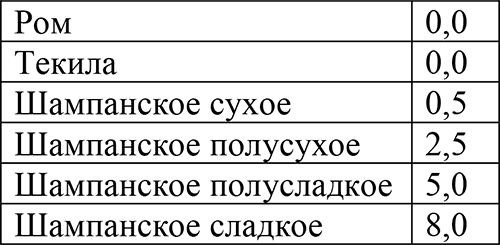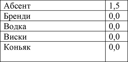 Сколько «стоят» алкогольные напитки, вам будет нетрудно подсчитать, используя данные следующей таблицы: