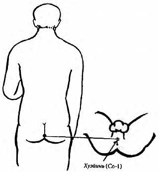 В общем цигун-массаже выделяют две «полости» (точки), которые являются наиболее важными для обмена Инь и Ян. Первая точка — Хуэйинь, которая расположена в промежности между гениталиями и анусом (рис. 2-37). В точке Хуэйинь янский Управляющий сосуд встречается с иньским Сосудом Зачатия.