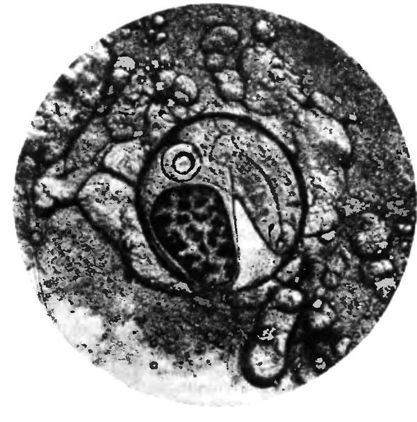 Рис. 4.5. Личинка описторха (метацеркарий), выделенная из рыбы (х60).