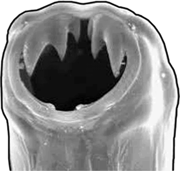 Развитие кривоголовок подобно развитию аскарид – личинки в кишечнике также проникают в кровеносное русло, часть развития проходят в легких, потом ползут в сторону ротовой полости, сглатываются со слюной и оказываются вновь в кишечнике, локализуясь в двенадцатиперстной кишке. Кривоголовки имеют крупные острые зубы (рис. 11). Этими зубами они прогрызают кишечную стенку, глубоко внедряются в ее толщу, растут и достигают половой зрелости. Самки выделяют за сутки до десяти тысяч яиц. Такая невысокая продуктивность затрудняет их выявление в анализах кала.