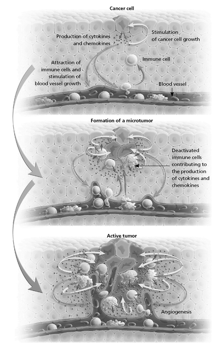 Движущей силой роста опухоли является порочный круг, который удается создать раковым клеткам. Побуждая иммунные клетки поддерживать воспаление, опухоль заставляет организм создавать топливо, необходимое для ее роста и последующего вторжения в окружающие ткани. Чем больше опухоль, тем больше очаг воспаления и тем успешнее она поддерживает собственный рост.
