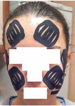 Как видно, здесь оказано несколько большее воздействие, связанное с декомпрессией зон лобных бугров. Для увеличения крово– и лимфотока проведено лимфотейпирование.