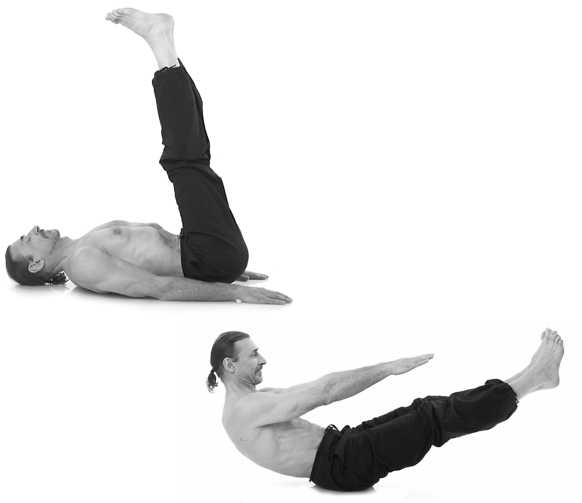 7. Оторвите прямые ноги от пола. Старайтесь, чтобы угол между ногами и полом был около 45°.