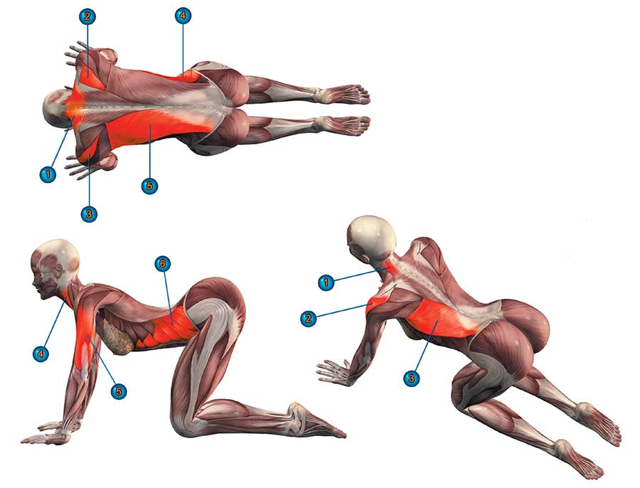 По возможности расслабьте дельтовидную мышцу, поскольку ее напряжение сковывает плечевой пояс и препятствует расправлению области лопаток. При выполнении упражнения втягивается живот, а значит, в какой-то степени также активизируются мышцы брюшного пресса.