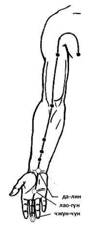 Точка чжун-чун имеет непосредственное отношение к терморегуляции. Можно ее помассировать, если вдруг пришлось долго стоять или ходить на морозе – ноги не замерзнут (вспомните, как мы потираем руки, разогревая ладони – мы массируем лао-гун и чжун-чун).