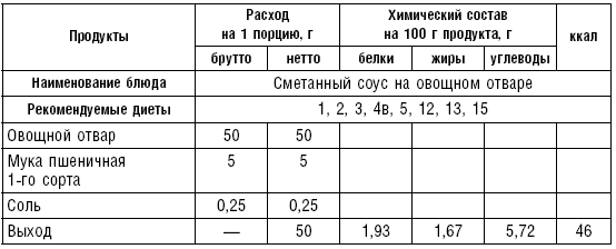 Соусы являются составной частью горячих и холодных блюд и используются, чтобы разнообразить пищу. Они повышают ее калорийность, улучшают внешний вид и вкусовые качества. Соусы, кроме масляных, готовятся на рыбном, мясном, овощном, грибном бульонах, на молоке или сметане с мукой. Блюда из творога, круп и макаронных изделий можно заправлять фруктово-ягодными соусами (жидкие кисели).